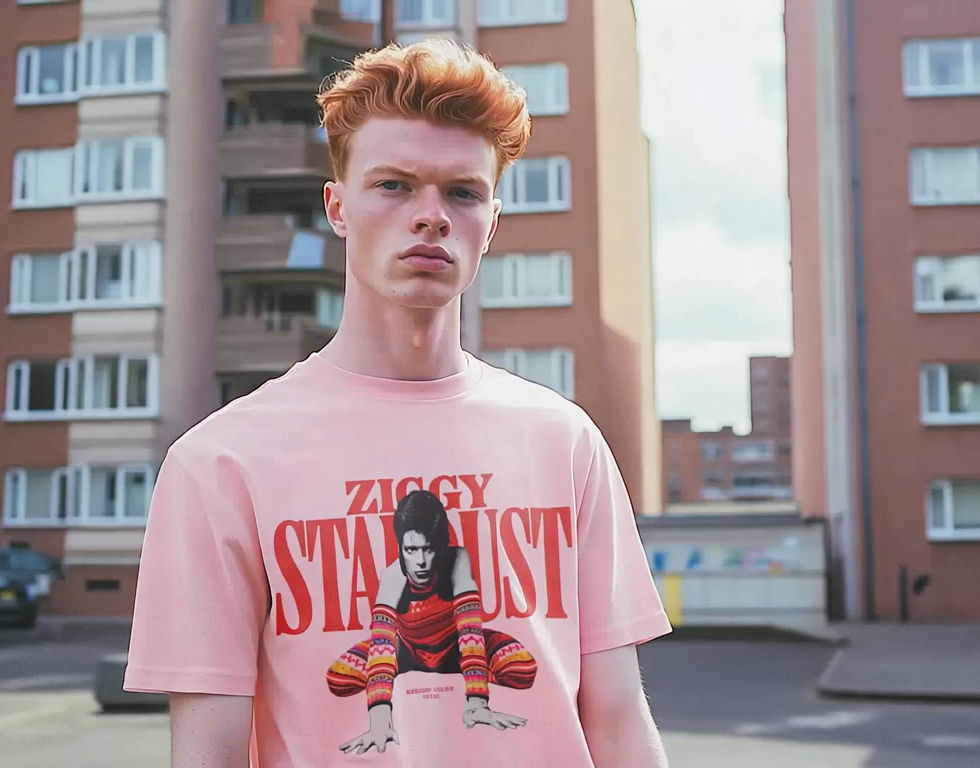 Pay homage to the legendary David Bowie with this Ziggy Stardust t-shirt, a tribute to his iconic 70s rock persona. This vintage-style tee features a bold design inspired by Bowie's groundbreaking fashion and electrifying stage presence. Perfect for fans of classic rock and glam fashion, this shirt is a stylish way to celebrate one of music's most influential artists. Available in various colors and sizes, it’s an essential piece for every Bowie fan and rock enthusiast.Crafted from high-quality cotton, this t-shirt offers a classic fit and is perfect for any occasion, whether you’re attending a casual gathering, a fashion event, or simply want to make a statement. The detailed graphic and bold lettering ensure this piece stands out in your wardrobe.Key Features:Premium cotton fabric for a soft and comfortable fitClassic crew neck and short sleeves designHigh-quality print of Ziggy StardustAvailable in a variety of sizes (S, M, L, XL, XXL)Perfect gift for fans of Ziggy Stardust, fashion enthusiasts, and trendsettersCare Instructions:Machine wash cold with similar colorsTumble dry low or hang dryDo not bleach or iron directly on the designMake a fashion statement that honors one of the most beloved Rockstars in modern history with this t-shirt. A must-have for any fan of fashion or miusic icons.